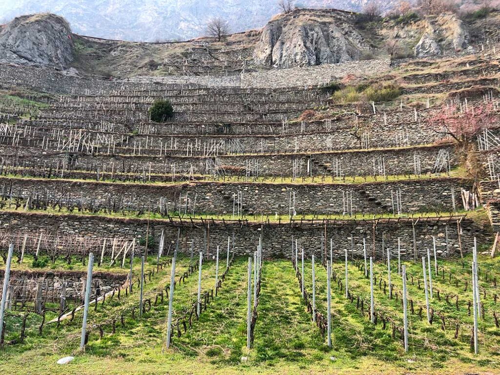 La Valle d’Aosta è una piccola regione montuosa delle Alpi occidentali, con non solo il Monte Bianco ma il Cervino, il Monte Rosa e il Gran Paradiso che formano il suo skyline innevato. I vigneti, alcuni dei quali sono tra i siti più alti d’Europa, occupano terrazzamenti e pendii lungo il fiume Dora Baltea, che poi scende nel vicino Piemonte, dove si congiunge al Po. La cultura del vino della Valle d’Aosta è una fusione di tradizioni vinicole francesi, italiane e svizzere. Il francese è la lingua principale e come tale le etichette sulle bottiglie possono creare confusione: in genere sia l’italiano che il francese vengono usati contemporaneamente.